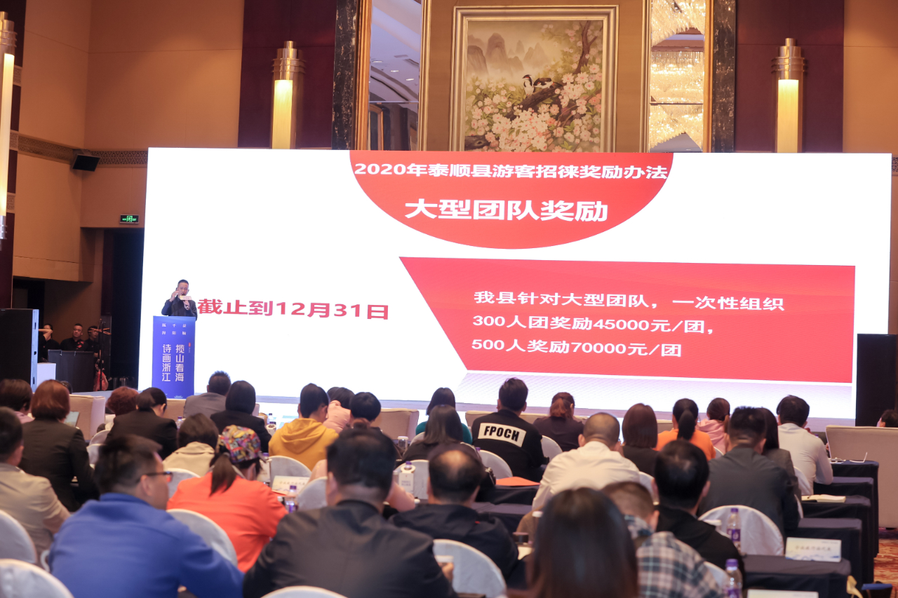 值得一提的是,会上,瓯海、平阳、泰顺分别推出了游客招徕奖励政策。政策一经发布,便吸引了参会的宁波、台州两地旅行社代表们的目光。据了解,瓯海区发布了《2020年瓯海区旅游游客引流奖励政策》,搭建了游客引流监管系统平台,通过该平台对各旅游企业游客引流情况进行线上登记、查询、监督;平阳县根据实购门票总额、住宿、大型团队等对旅行社进行奖补;泰顺县则通过地接奖励、组团奖励、特殊团队奖励三个方面招徕游客。其中,截止到12月31日,针对赴泰顺旅游的大型团队,一次性组织300人团奖励45000元/团,500人奖励70000元/团。此外,会上,温州与宁波、台州两地相关部门及文旅企业就旅游市场开发、信息互通等方面进行了深入的交流,并与宁波、台州两地旅游协会签订了合作协议,对实现温宁、温台资源共享、市场联动、客源互送等方面起到了积极的推动作用。