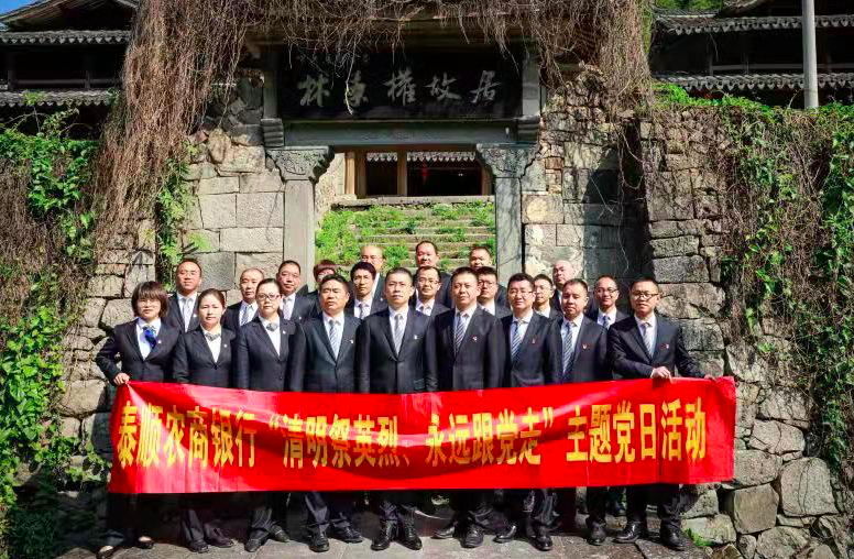 4月10日上午,泰顺农商银行党委立足当地红色资源,组织开展“清明祭英烈、永远跟党走”主题党日活动。通过实地走访林秉权故居、白柯湾闽浙边临时省委旧址和中共浙南特委旧址,追寻革命印迹、感悟英烈精神,进一步推动该行党史学习教育走实走深、见行见效。