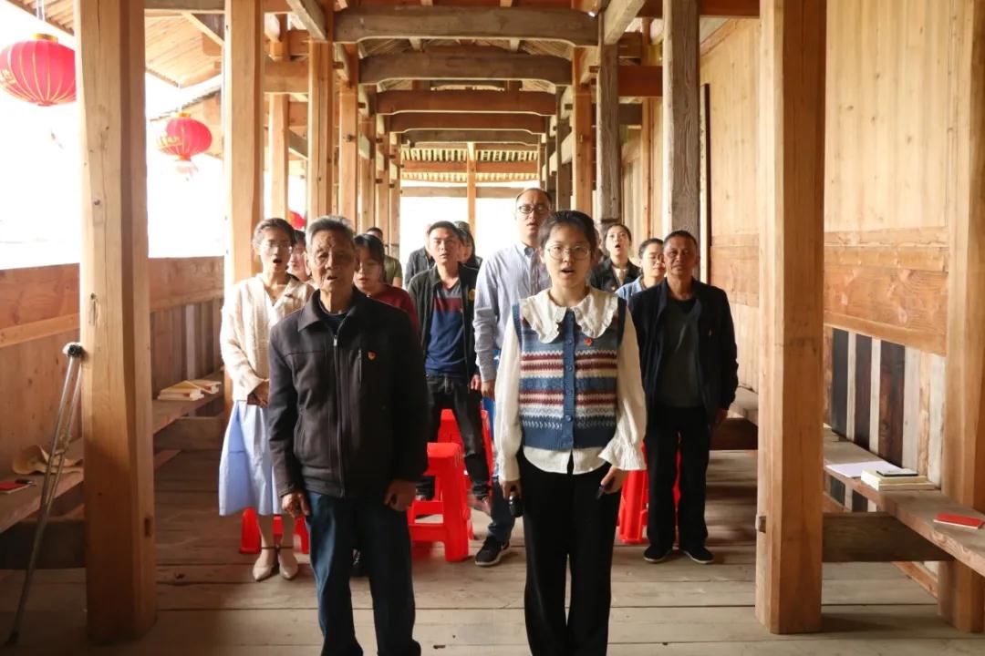 泰顺新闻网讯 4月26日上午,在筱村镇东垟村国保廊桥——文重桥上,一场别样的党课在庄严的宣誓声中徐徐展开……在党史学习教育开展如火如荼之际,为激励全镇党员尤其是年轻党员不忘初心、牢记使命,切实增强开展好党史学习教育的思想自觉和行动自觉,筱村镇党委专门组织包括党史宣讲团成员在内的镇机关年轻党员听新中国成立前入党的老党员林正好讲红色故事、话精神传承、论历史担当。