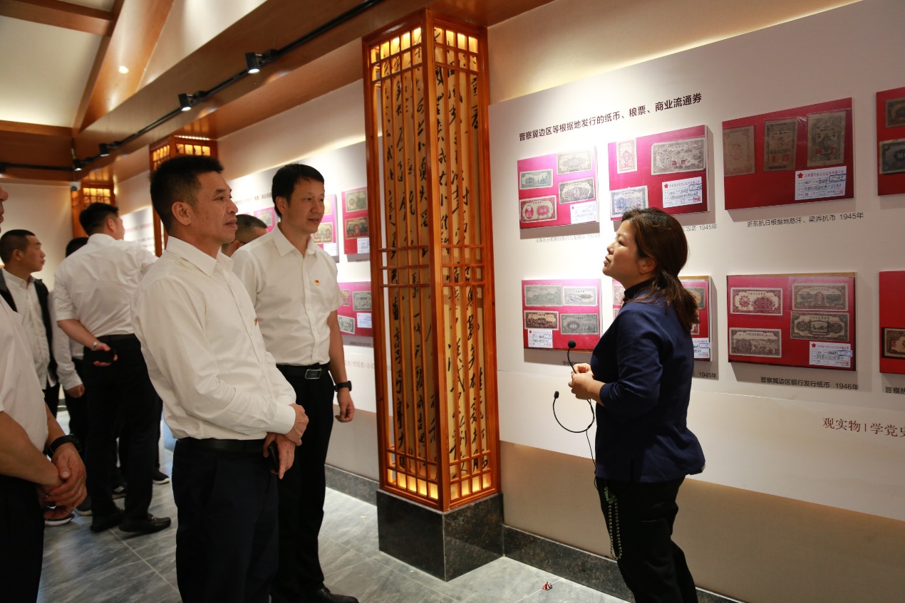 在卢梨“老东家”党群工作主题馆,寻迹根脉、追忆历史,工作人员带领大家进行了互动教学,并讲解了革命故事,主题馆中的一篇篇文献资料,一张张历史照片,生动再现了先辈先烈,为争取民族解放、革命胜利,开展的艰苦卓绝的斗争历史,大家纷纷为革命先烈们英勇无畏,不顾个人的精神所触动,对党员的使命和责任有了更深的体会。之后,大家集体诵读了一段文献史料,让全体党员干部感受到了革命先烈艰苦奋斗的精神。