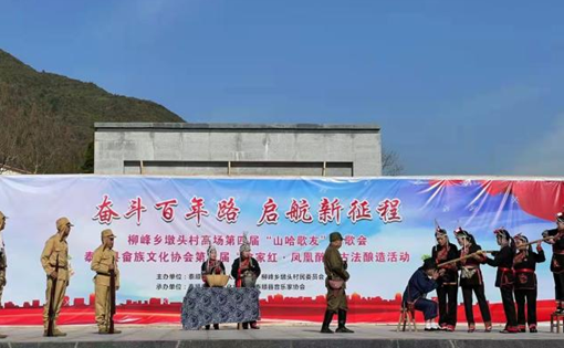 泰顺新闻网讯 奋斗百年路,启航新征程。近日,柳峰乡墩头村高场第四届“山哈歌友”畲歌会暨泰顺县畲族文化协会第二届“畲家红,凤凰醉”古法酿造活动拉开帷幕。演员和观众共同庆祝建党百年的光辉历程。